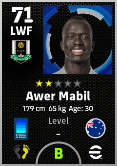. Awer Mabil is a Left Wing Forward footballer from Australia who plays for Castellón Nb in eFootball 2026.
