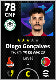 . Diogo Gonçalves is a Center Midfielder footballer from Portugal who plays for Konyaspor in eFootball 2026.