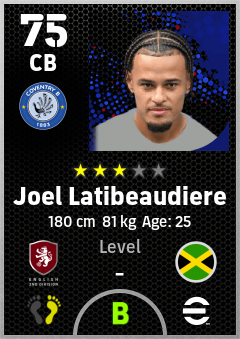 . Joel Latibeaudiere is a Center Back footballer from Jamaica who plays for Coventry B in eFootball 2026.