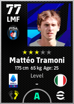 . Mattéo Tramoni is a Left Midfielder footballer from Italy who plays for Pisa Sporting Club in eFootball 2026.