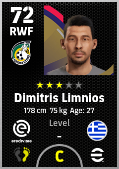 . Dimitris Limnios is a Right Wing Forward footballer from Greece who plays for Fortuna Sittard in eFootball 2026.