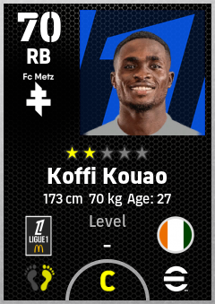 . Koffi Kouao is a Right Back footballer from Côte D'ivoire who plays for Fc Metz in eFootball 2026.