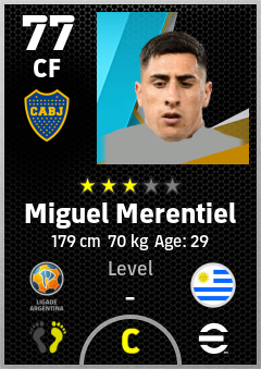 . Miguel Merentiel is a Center Forward footballer from Uruguay who plays for Ca Boca Juniors in eFootball 2026.