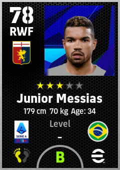 . Junior Messias is a Right Wing Forward footballer from Brazil who plays for Genova Rb in eFootball 2026.