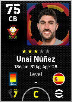 . Unai Núñez is a Center Back footballer from Spain who plays for Valencia Bn in eFootball 2026.