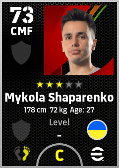 Mykola Shaparenko is a Center Midfielder footballer from Ukraine who plays for Free in eFootball 2026.
