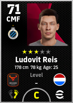 . Ludovit Reis is a Center Midfielder footballer from Netherlands who plays for Brugge Bz in eFootball 2026.