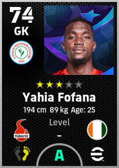 . Yahia Fofana is a Goalkeeper footballer from Côte D'ivoire who plays for Çaykur Rizespor in eFootball 2026.