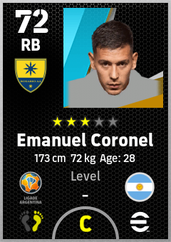 . Emanuel Coronel is a Right Back footballer from Argentina who plays for Rosario Aa in eFootball 2026.