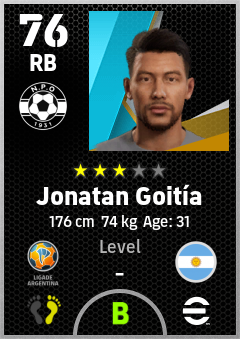 . Jonatan Goitía is a Right Back footballer from Argentina who plays for Nueva Pompeya Nb in eFootball 2026.