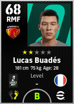 . Lucas Buadés is a Right Midfielder footballer from France who plays for Le Mans Fc in eFootball 2026.