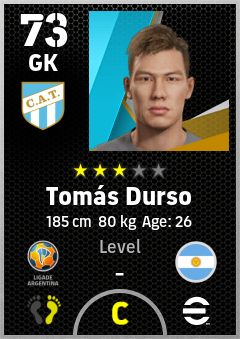 . Tomás Durso is a Goalkeeper footballer from Argentina who plays for Tucumán Ab in eFootball 2026.