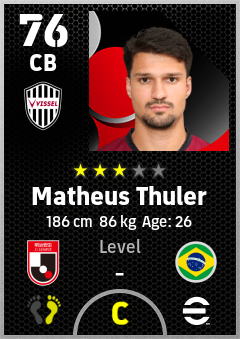 . Matheus Thuler is a Center Back footballer from Brazil who plays for Vissel Kobe in eFootball 2026.