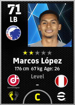 . Marcos López is a Left Back footballer from Peru who plays for København Hb in eFootball 2026.