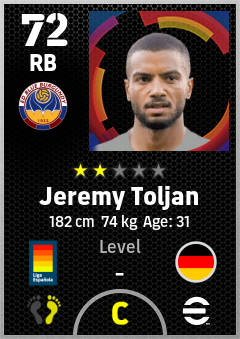 . Jeremy Toljan is a Right Back footballer from Germany who plays for Levante Ra in eFootball 2026.