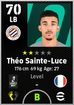 . Théo Sainte-Luce is a Left Back footballer from France who plays for Montpellier Hérault Sc in eFootball 2026.
