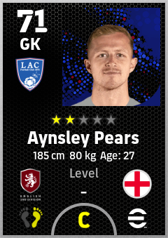 . Aynsley Pears is a Goalkeeper footballer from England who plays for Blackburn Bw in eFootball 2026.