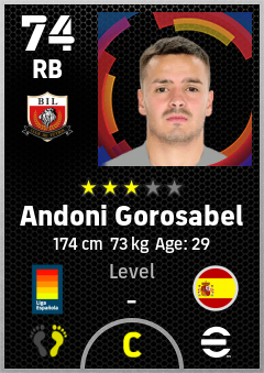 . Andoni Gorosabel is a Right Back footballer from Spain who plays for Bilbao Br in eFootball 2026.