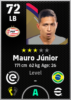 . Mauro Júnior is a Left Back footballer from Brazil who plays for Psv in eFootball 2026.