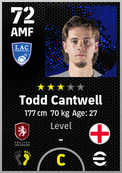. Todd Cantwell is a Attacking Midfielder footballer from England who plays for Blackburn Bw in eFootball 2026.