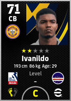 . Ivanildo is a Center Back footballer from Cabo Verde who plays for Cd Nacional in eFootball 2026.