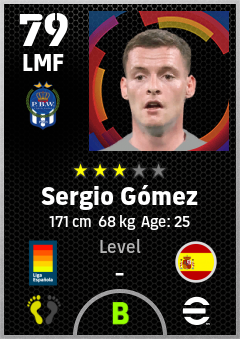 . Sergio Gómez is a Left Midfielder footballer from Spain who plays for Vasco Gipuzkoa Ab in eFootball 2026.