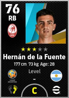 . Hernán De La Fuente is a Right Back footballer from Argentina who plays for Alta Córdoba Rb in eFootball 2026.