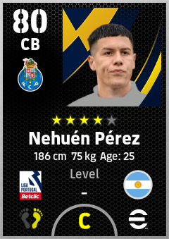 . Nehuén Pérez is a Center Back footballer from Argentina who plays for Fc Porto in eFootball 2026.