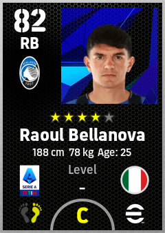 . Raoul Bellanova is a Right Back footballer from Italy who plays for Atalanta Bc in eFootball 2026.