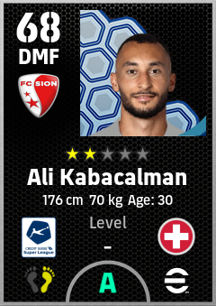 . Ali Kabacalman is a Defensive Midfielder footballer from Switzerland who plays for Sion Rw in eFootball 2026.