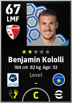 . Benjamin Kololli is a Left Midfielder footballer from Kosovo who plays for Sion Rw in eFootball 2026.