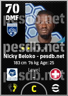 . Nicky Beloko is a Defensive Midfielder footballer from Switzerland who plays for Lausanne Bw in eFootball 2026.