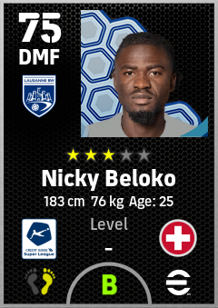 . Nicky Beloko is a Defensive Midfielder footballer from Switzerland who plays for Lausanne Bw in eFootball 2026.