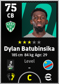. Dylan Batubinsika is a Center Back footballer from Congo Dr who plays for As Saint-Étienne in eFootball 2026.
