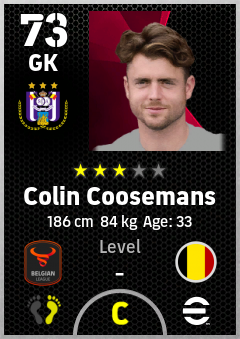 . Colin Coosemans is a Goalkeeper footballer from Belgium who plays for Anderlecht Pw in eFootball 2026.