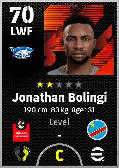 . Jonathan Bolingi is a Left Wing Forward footballer from Congo Dr who plays for Chonburi Fc in eFootball 2026.