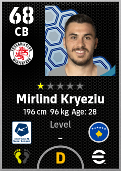 . Mirlind Kryeziu is a Center Back footballer from Kosovo who plays for Winterthur Rw in eFootball 2026.