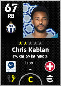 . Chris Kablan is a Right Back footballer from Switzerland who plays for Zürich Wb in eFootball 2026.