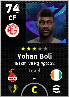 . Yohan Boli is a Center Forward footballer from Côte D'ivoire who plays for Antalyaspor in eFootball 2026.
