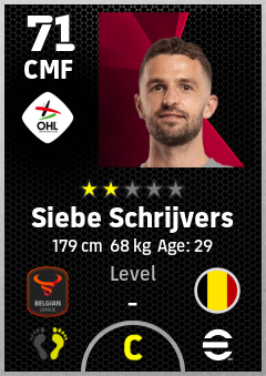 . Siebe Schrijvers is a Center Midfielder footballer from Belgium who plays for Leuven Wzrg in eFootball 2026.