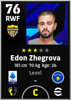 . Edon Zhegrova is a Right Wing Forward footballer from Kosovo who plays for Piemonte Bn in eFootball 2026.