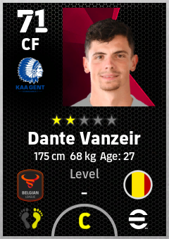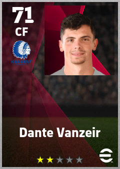 . Dante Vanzeir is a Center Forward footballer from Belgium who plays for Gent Bw in eFootball 2026.