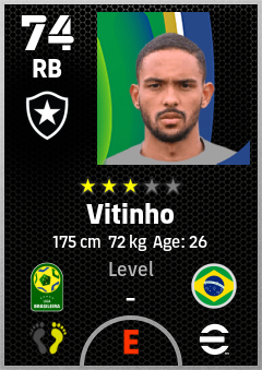 . Vitinho is a Right Back footballer from Brazil who plays for Botafogo Fr in eFootball 2026.