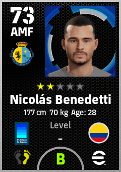 . Nicolás Benedetti is a Attacking Midfielder footballer from Colombia who plays for Las Palmas Aa in eFootball 2026.