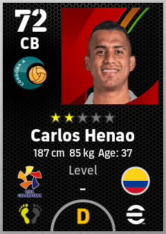 . Carlos Henao is a Center Back footballer from Colombia who plays for Córdoba A in eFootball 2026.
