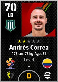 . Andrés Correa is a Left Back footballer from Colombia who plays for Cali Vb in eFootball 2026.