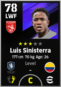 . Luis Sinisterra is a Left Wing Forward footballer from Colombia who plays for Bournemouth Rb in eFootball 2026.