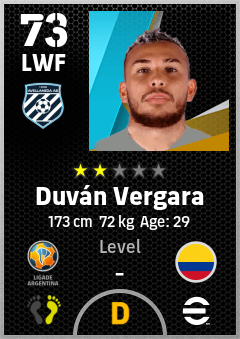 . Duván Vergara is a Left Wing Forward footballer from Colombia who plays for Avellaneda Ab in eFootball 2026.