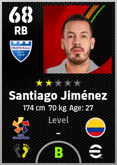 . Santiago Jiménez is a Right Back footballer from Colombia who plays for Pasto Raa in eFootball 2026.