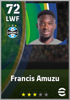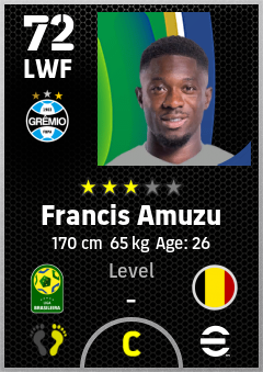 . Francis Amuzu is a Left Wing Forward footballer from Belgium who plays for Grêmio Fbpa in eFootball 2026.